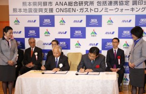 ANAホールディングス(ANAHD、9202)傘下のANA総合研究所は、熊本県阿蘇市と包括連携協定を4月21日に締結した。震災復興や地域活性化に取り組む。