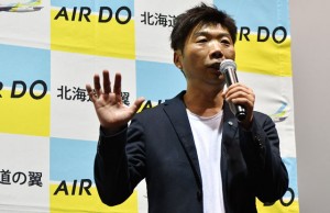 エア・ドゥの谷寧久社長は、「来年12月に就航20周年を迎えるにあたり、羽田と新千歳のカウンターをリニューアルする計画がある。カウンター上部に50-60インチの画面を2枚設置し、1枚には運航情報、もう1枚には保安検査や手荷物の案内だけではなく、北海道の魅力や自然を紹介する映像がないかと探していたところ、北海道庁から映画の協賛企業を探していると紹介があった」と、協賛に至った経緯を説明した。