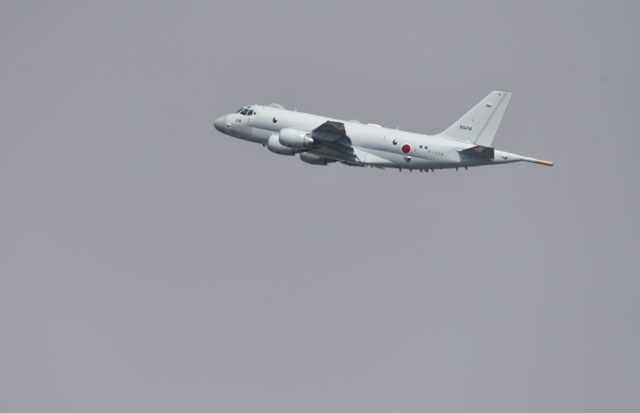 パリ航空ショー初出展を終えル・ブルジェ空港を離陸し厚木基地へ向かう海上自衛隊のP-1=17年6月22日 PHOTO: Tadayuki YOSHIKAWA/Aviation Wire