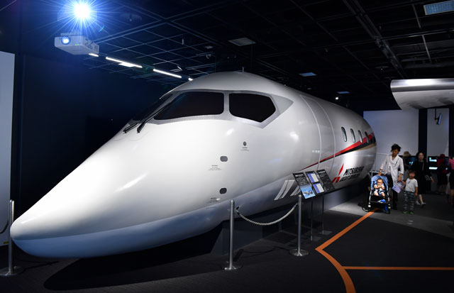 三菱みなとみらい技術館に展示されているMRJのモックアップ=17年7月17日 PHOTO: Tadayuki YOSHIKAWA/Aviation Wire