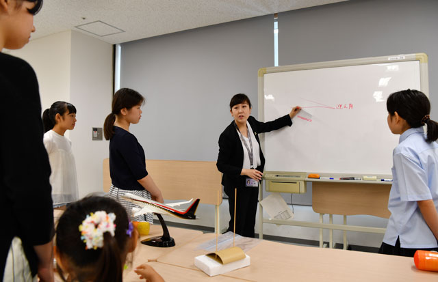 三菱みなとみらい技術館で開かれたイベントで航空機が飛ぶ原理について講義を受ける女子中学生=17年7月17日 PHOTO: Tadayuki YOSHIKAWA/Aviation Wire