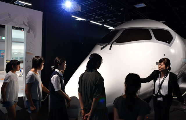 三菱重工業(7011)は7月17日、横浜の三菱みなとみらい技術館で女子中学生を対象としたイベント「世界に誇る日本のものづくり 航空機編」を開いた。