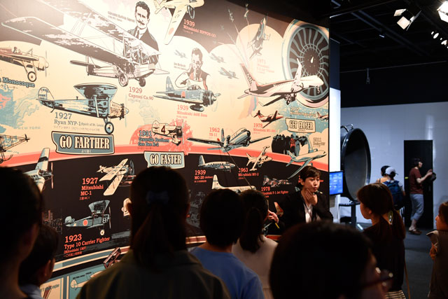 三菱みなとみらい技術館の飛行機の歴史を紹介するコーナー「ヒストリーウォーク」=17年7月17日 PHOTO: Tadayuki YOSHIKAWA/Aviation Wire