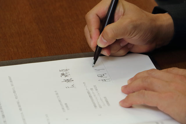 包括連携協定にサインするジェットスター・ジャパンの片岡会長=17年7月19日 PHOTO: Youichi KOKUBO/Aviation Wire