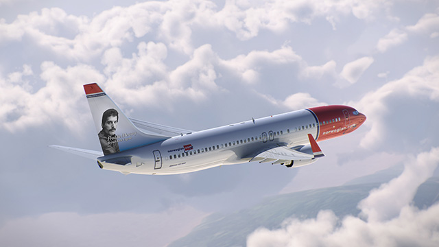ノルウェーのLCCノルウェー・エアシャトル(NAX/DY)は、尾翼に英ロックバンド「クイーン」のボーカリスト、故フレディ・マーキュリー(1946-1991)をデザインした機体を就航させる。尾翼に著名人をデザインする「テイル・フィン・ヒーロー」の一環。