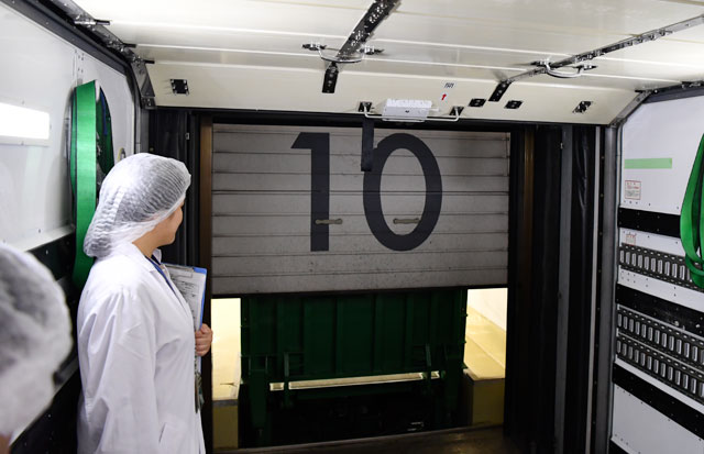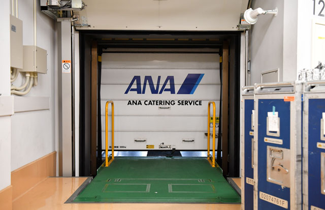 機内食工場から見たフードローダー車の後部ドア=17年7月29日 PHOTO: Tadayuki YOSHIKAWA/Aviation Wire