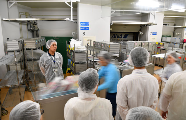 機内食工場を見学する参加者=17年7月29日 PHOTO: Tadayuki YOSHIKAWA/Aviation Wire