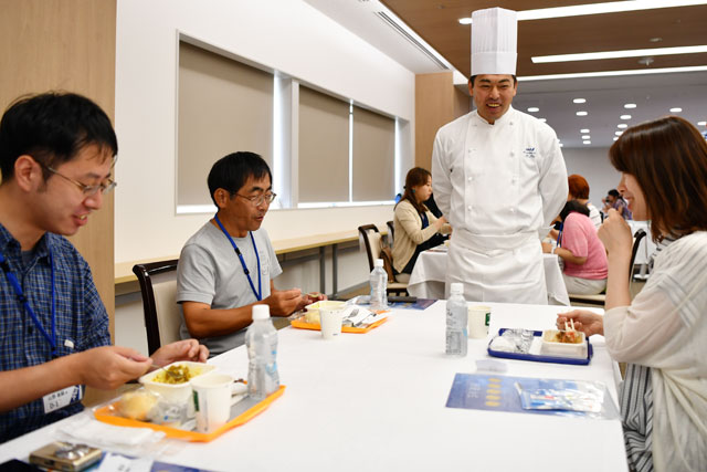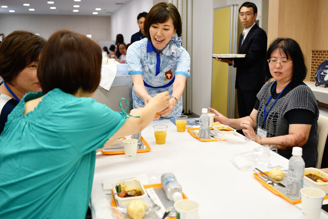7月29日、ANAの機内食を手掛けるANAケータリングサービス(ANAC)の川崎工場では決選に進出したメニューの試食会が開かれた。試食会は昨年に続いて2回目で、予選参加者の中から抽選で選ばれた37人が関東近郊から訪れ、機内食を味わった。