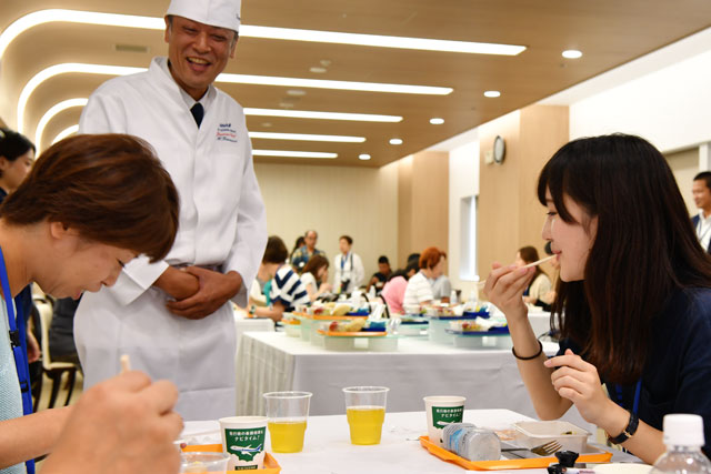 夫婦で参加した小橋達也さんとまなみさんは、海外によく出掛ける知り合いから、試食会があることを教えてもらったという。鰻玉丼を試食した達也さんは、「付け合わせもすごくあっていて、おいしいです」と喜んでいた。