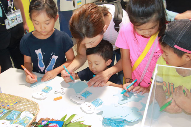 エア・ドゥが新千歳空港で旧暦に合わせて行った七夕で短冊を書く子供たち=17年8月7日 PHOTO: Youichi KOKUBO/Aviation Wire