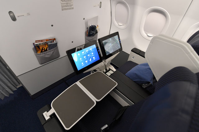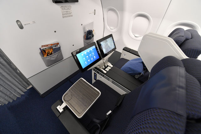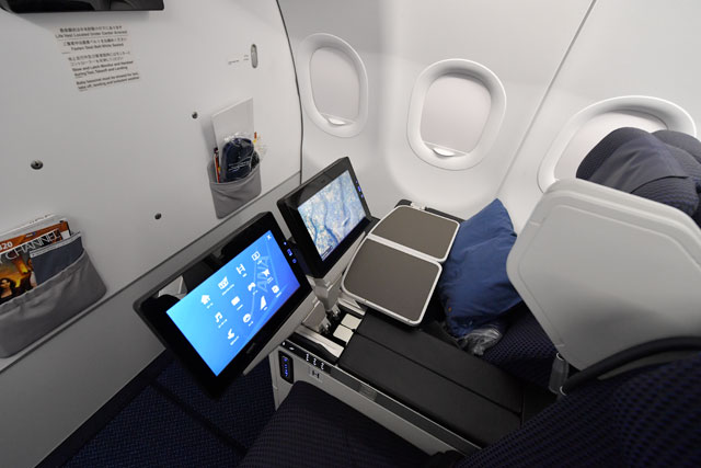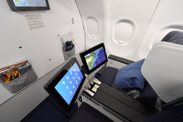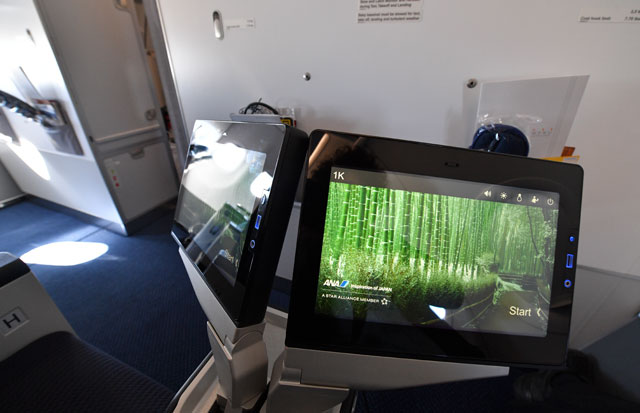 IFEは、ANAでは初採用となるゾディアック製「Rave」。タッチパネル式モニターはビジネスとプレミアムクラスで12インチを採用するなど、従来よりも大型化した。また、機内インターネット接続サービス「ANA WiFi サービス」にも対応している。