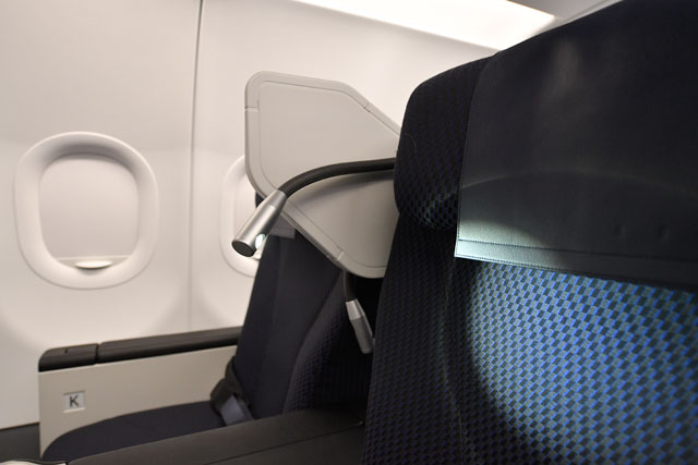 これまで短距離国際線の機材というと、どうしてもひと時代遅れた客室装備という印象があったが、A320neoはこれを覆す快適さだった。