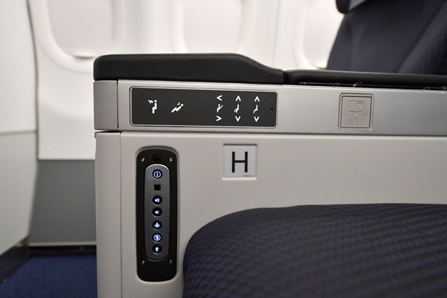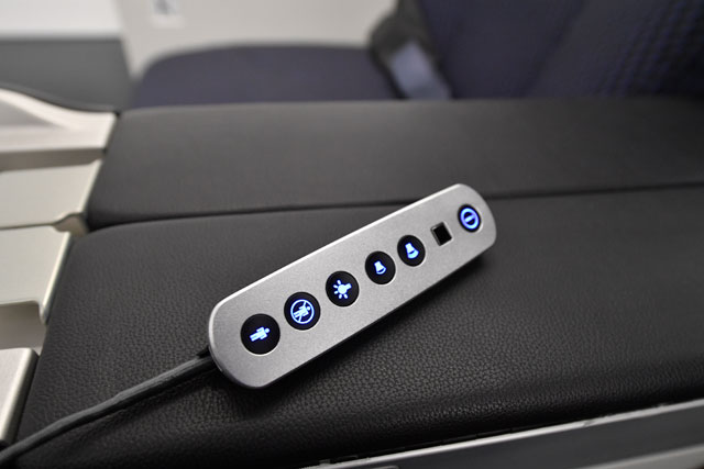 ANAのA320neo初号機のビジネスクラスのコントローラー=17年2月17日 PHOTO: Tadayuki YOSHIKAWA/Aviation Wire
