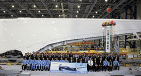 787向け複合材主翼100号機目の出荷式(三菱重工の資料から)