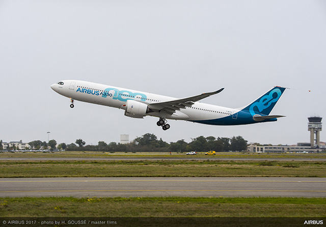 初飛行するA330-900neo=17年10月19日 PHOTO: H. Gousse, Master Films/Airbus