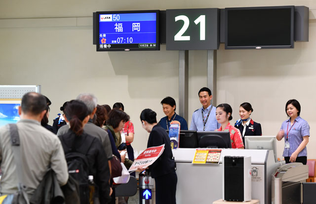 JTA、新ジンベエジェット就航 虹に彩られた那覇から初便出発