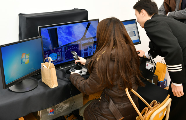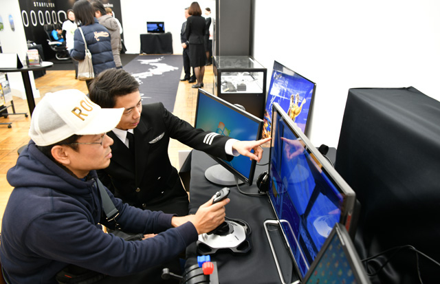 KitaQフェス in TOKYOのスターフライヤーブースに設けられたフライトシミュレーター=17年11月25日 PHOTO: Tadayuki YOSHIKAWA/Aviation Wire