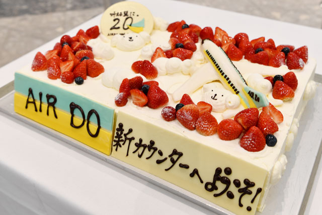 エア・ドゥの新カウンターオープンを記念したケーキ=18年1月17日 PHOTO: Tadayuki YOSHIKAWA/Aviation Wire
