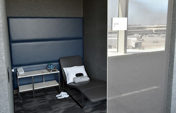 サンフランシスコ空港のラウンジ「ユナイテッド・ポラリス」で5室設定する「クワイエット・スイート」=18年4月25日 PHOTO: Yusuke KOHASE/Aviation Wire