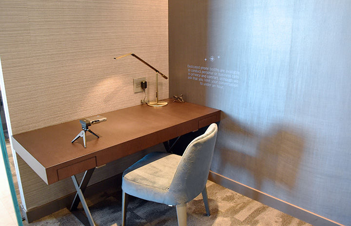 サンフランシスコ空港のラウンジ「ユナイテッド・ポラリス」のワークスペース=18年4月25日 PHOTO: Yusuke KOHASE/Aviation Wire