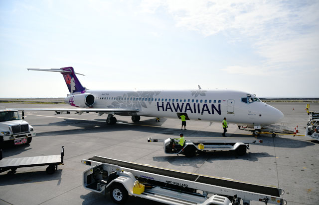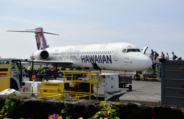 コナ空港で出発を待つハワイアン航空の717=PHOTO: Tadayuki YOSHIKAWA/Aviation Wire