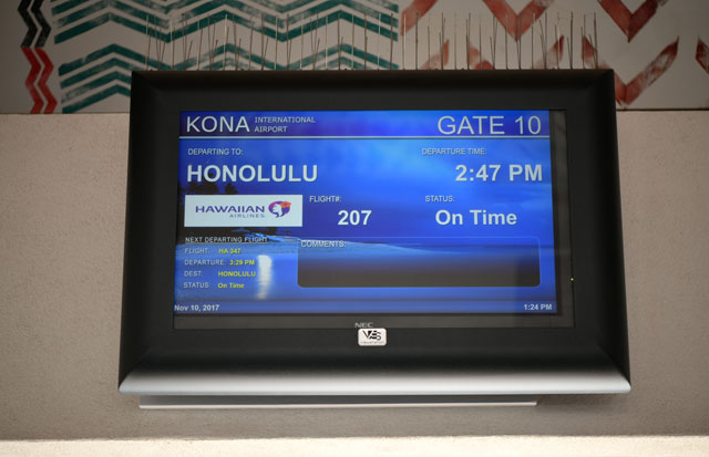 コナ空港の出発案内=PHOTO: Tadayuki YOSHIKAWA/Aviation Wire