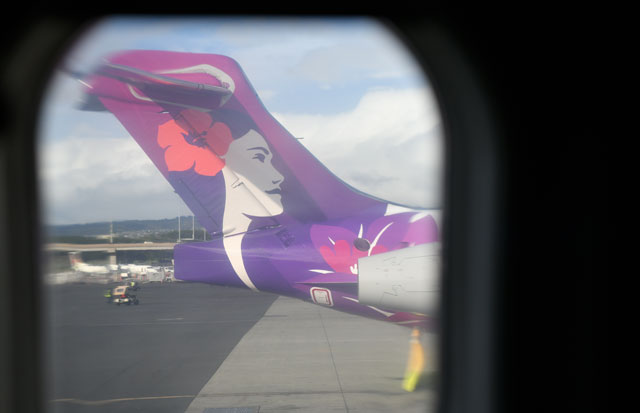 ホノルルに到着したHA207便から見えたハワイアン航空の717=PHOTO: Tadayuki YOSHIKAWA/Aviation Wire