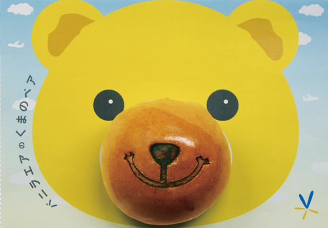 春メニューで提供していたイチゴクリームパンには、クマの鼻と口を模した焼印を施した。黄色いクマをデザインした専用トレーマットと提供する。350円。