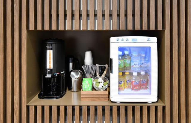 ラウンジにはソフトドリンクも用意=18年6月14日 PHOTO: Tadayuki YOSHIKAWA/Aviation Wire