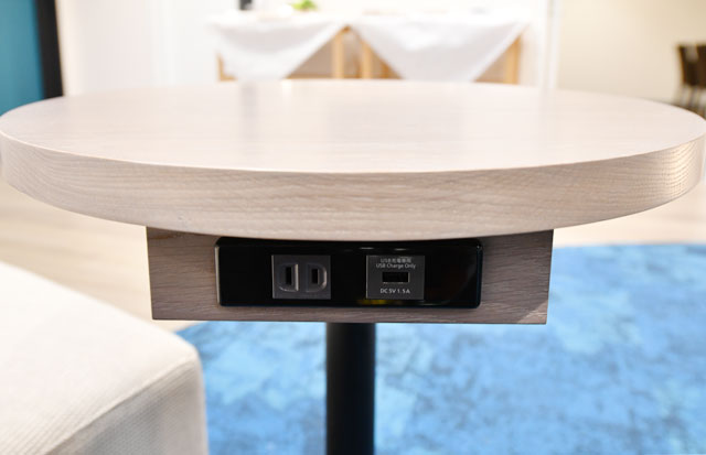 テーブル下に設けられたコンセント=18年6月14日 PHOTO: Tadayuki YOSHIKAWA/Aviation Wire