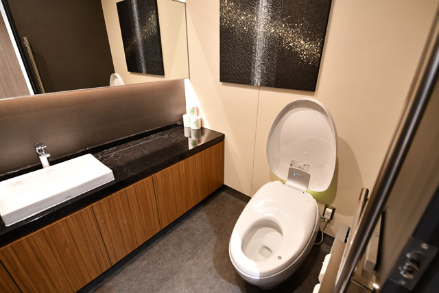 最上級のウォシュレット付き便器を備えた化粧室=18年6月14日 PHOTO: Tadayuki YOSHIKAWA/Aviation Wire