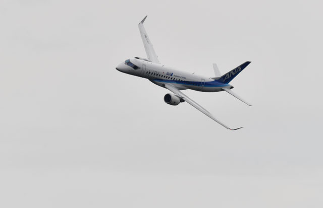 MRJ、ファンボロー航空ショーで初の飛行展示 宮永社長「強い競争力ある」