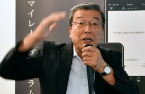 マイレージ会員制度リニューアルについて説明するスターフライヤーの松石社長=18年7月26日 PHOTO: Tadayuki YOSHIKAWA/Aviation Wire