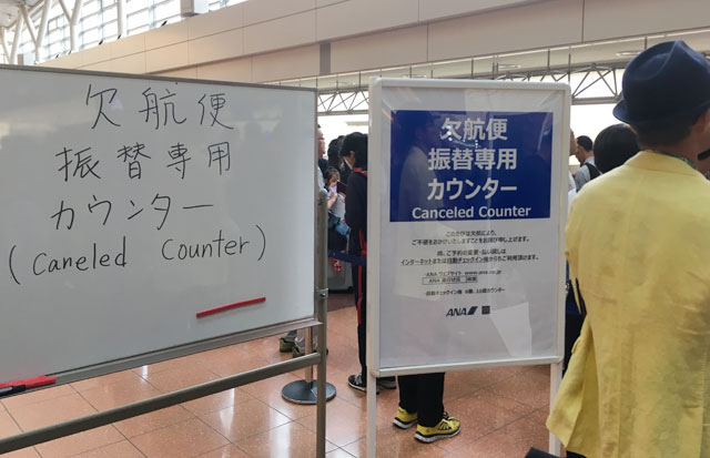 羽田空港に設けられたANAの欠航便振替専用カウンター=18年9月6日 PHOTO: Tadayuki YOSHIKAWA/Aviation Wire
