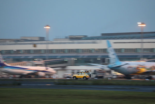 震度6弱を記録した新千歳空港をパトロールする航空局の車両=18年9月6日 PHOTO: Stringer/Aviation Wire