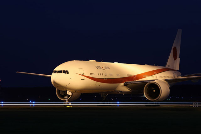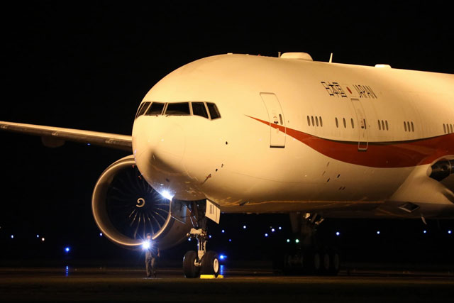 震度6弱の地震に見舞われた千歳基地に駐機中の次期政府専用機を点検する自衛隊員=18年9月6日 PHOTO: Stringer/Aviation Wire