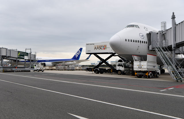 関空第1ターミナル到着初便となったルフトハンザのフランクフルト発LH740便=18年9月14日 PHOTO: Tadayuki YOSHIKAWA/Aviation Wire