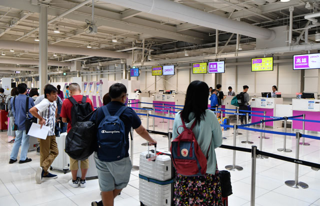 暫定運用が始まった関空第1ターミナルのジェットスター・ジャパンの端末でチェックインする乗客=18年9月14日 PHOTO: Tadayuki YOSHIKAWA/Aviation Wire
