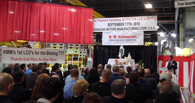 貨物扉を製造するのは、川崎重工の米ネブラスカ州にある現地法人「Kawasaki Motors Manufacturing Corp., U.S.A.」のリンカーン工場。最初の777向け貨物扉を完成させ、出荷式を同日開いた。