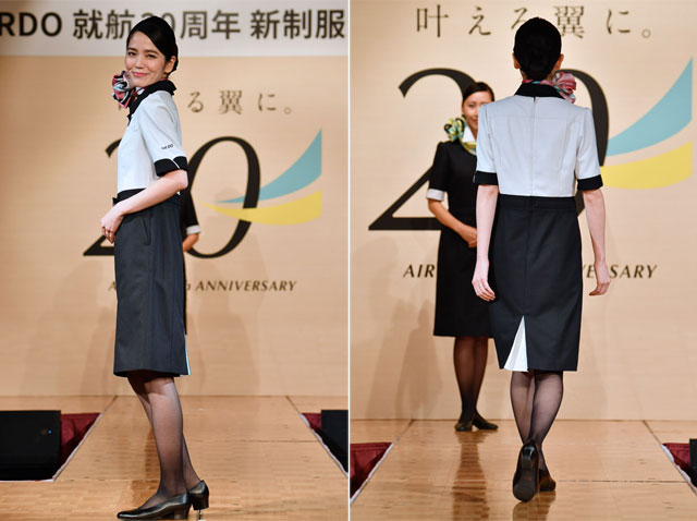 4代目となる客室乗務員の新制服を発表したエア・ドゥ(ADO/HD)。就航20周年を迎える12月20日から着用を開始するもので、客室乗務員のほか地上係員やパイロット、整備士の制服もリニューアルする。