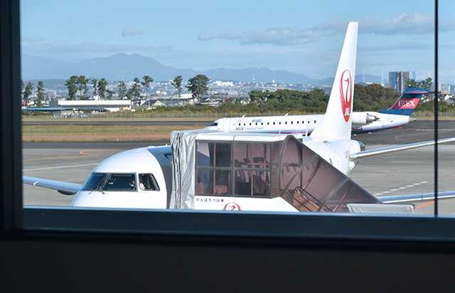 ピア棟発の初便となったのは、日本航空(JAL/JL、9201)グループのジェイエア(JAR/XM)が運航する、札幌行きJL2901便(エンブラエル170型機、登録番号JA212J)。定刻午前7時40分発で、10番搭乗口を利用した。8番搭乗口からは、午前8時5分発の全日本空輸(ANA/NH)の成田行きNH3232便も出発した。
