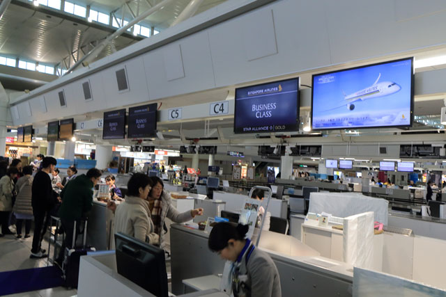 シンガポール航空787-10福岡発初便のチェックインカウンター=18年12月9日 PHOTO: Youichi KOKUBO/Aviation Wire
