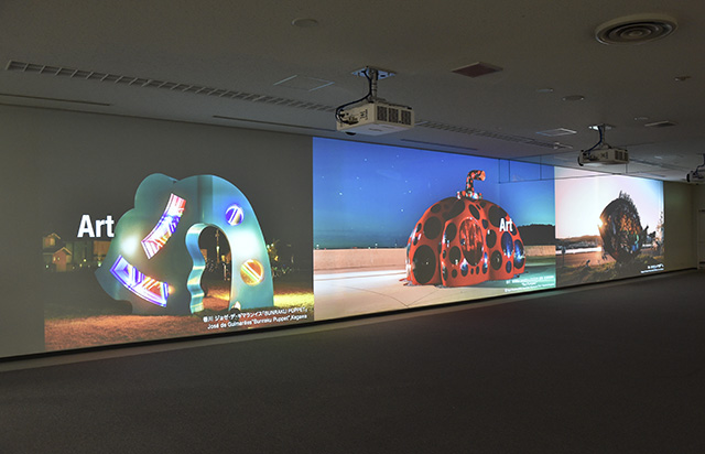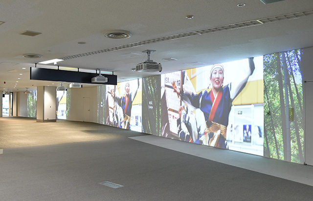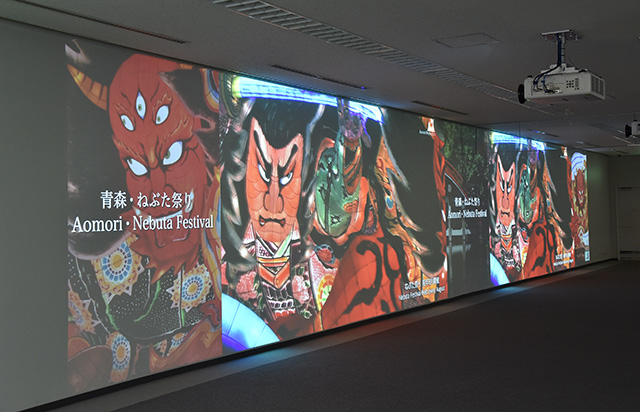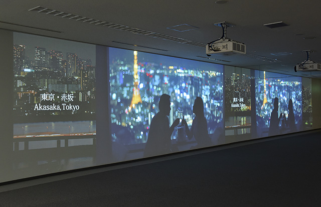 放映する動画は、日本政府観光局(JNTO)が訪日促進キャンペーン用に制作した7種類のほか、空間演出に携わるパナソニック システムソリューションズ ジャパンが制作したオリジナル4種類。これらを組み合わせ、11種類計17分間の動画を放映する。