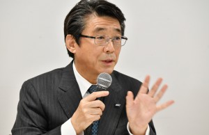 羽田発着枠の配分について見解を述べるANAホールディングスの片野坂社長=19年2月26日 PHOTO: Tadayuki YOSHIKAWA/Aviation Wire