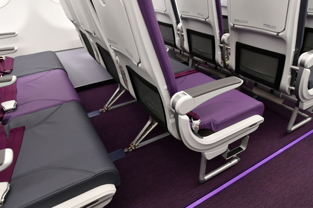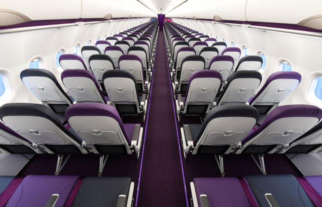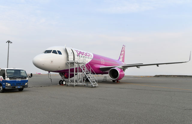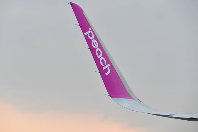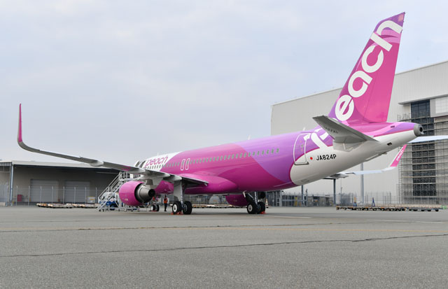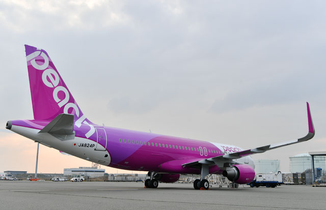 ANAホールディングス(ANAHD、9202)傘下のピーチは、2012年3月1日に就航。シートはプレリクライニングシートで4代目となった。今年度末をめどに、同じくANAHD傘下のバニラエア(VNL/JW)と統合することから、バニラが運航している15機のA320もコックピットや塗装、内装をピーチ仕様に順次改修していく。