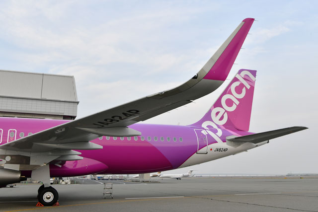 24号機は、もともとバニラの16号機として発注されていた機体で、従来のピーチ機にはない翼端の「シャークレット」が特徴。長さ約2.4メートルで、燃料消費を約4%改善する。客室側にはピーチのロゴをデザインした。