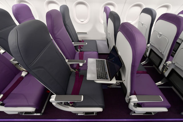 プレリクライニングシートを北東アジアで初採用したピーチのA320 24号機=19年3月22日 PHOTO: Tadayuki YOSHIKAWA/Aviation Wire