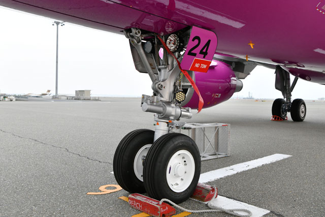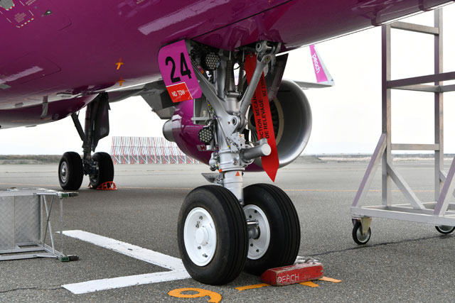 座席数は既存機と同じ1クラス180席で、シートピッチは約29インチ(約74センチ)。24号機は、もともとピーチと統合を予定している、同じくANAホールディングス(ANAHD、9202)傘下のバニラエア(VNL/JW)の16号機として発注されていた機体で、従来のピーチ機にはない翼端の「シャークレット」が特徴となっている。長さ約2.4メートルで、燃料消費を約4%改善する。客室側にはピーチのロゴをデザインした。