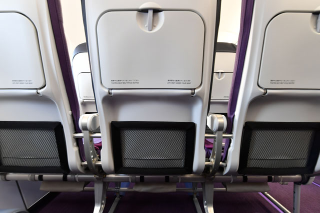 背もたれを15度倒したレカロ製プレリクライニングシートを採用したピーチのA320 24号機=19年3月22日 PHOTO: Tadayuki YOSHIKAWA/Aviation Wire
