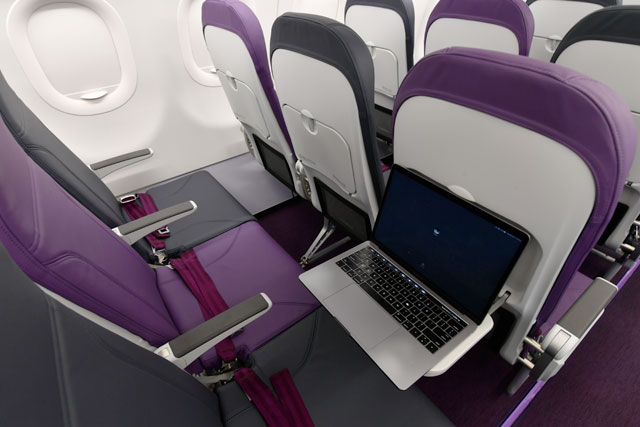 レカロによると、ピーチが選定したシート「SL3510」は、スリム化により足もとのスペースも広くし、従来の同社製シートと比べて居住空間が10%から15%広くなった。また、可動部分が減少することで耐久性や整備性が向上し、座り心地も背もたれを倒した状態に合わせて最適化しているという。